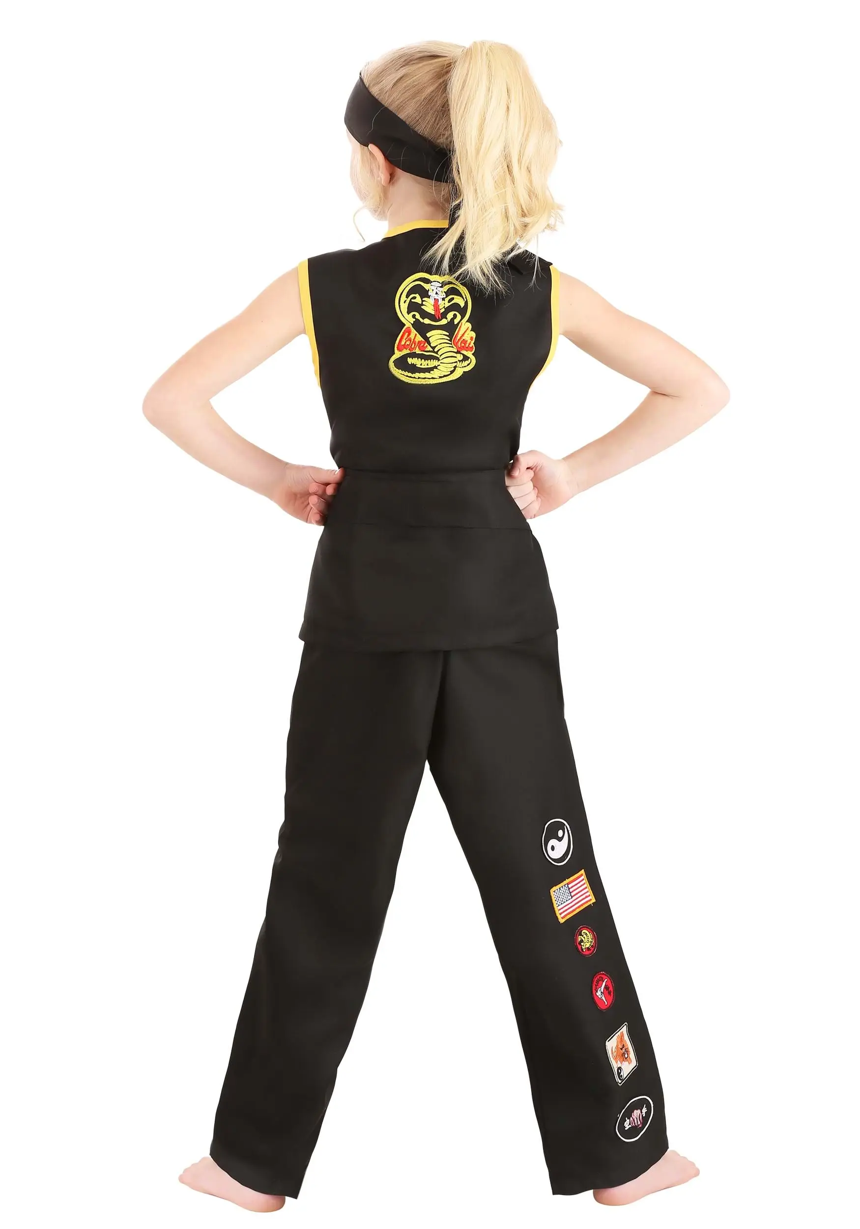 No matter the ambitions of your young master, this Cobra Kai costume for girls is sure to earn you some points. This is a Made By Us design that brings all the fandom of the Karate Kid franchise and combines it with a modern edge. This karate costume includes a black and yellow tunic with the Cobra Kai logo on the chest and a striking snake in the back. The matching pants have a ton of victory patches on each leg and you’ll cinch the look together with the iconic black belt. Keep in fighting form with the Cobra Kai headband and your kiddo will have their ruthless edge.