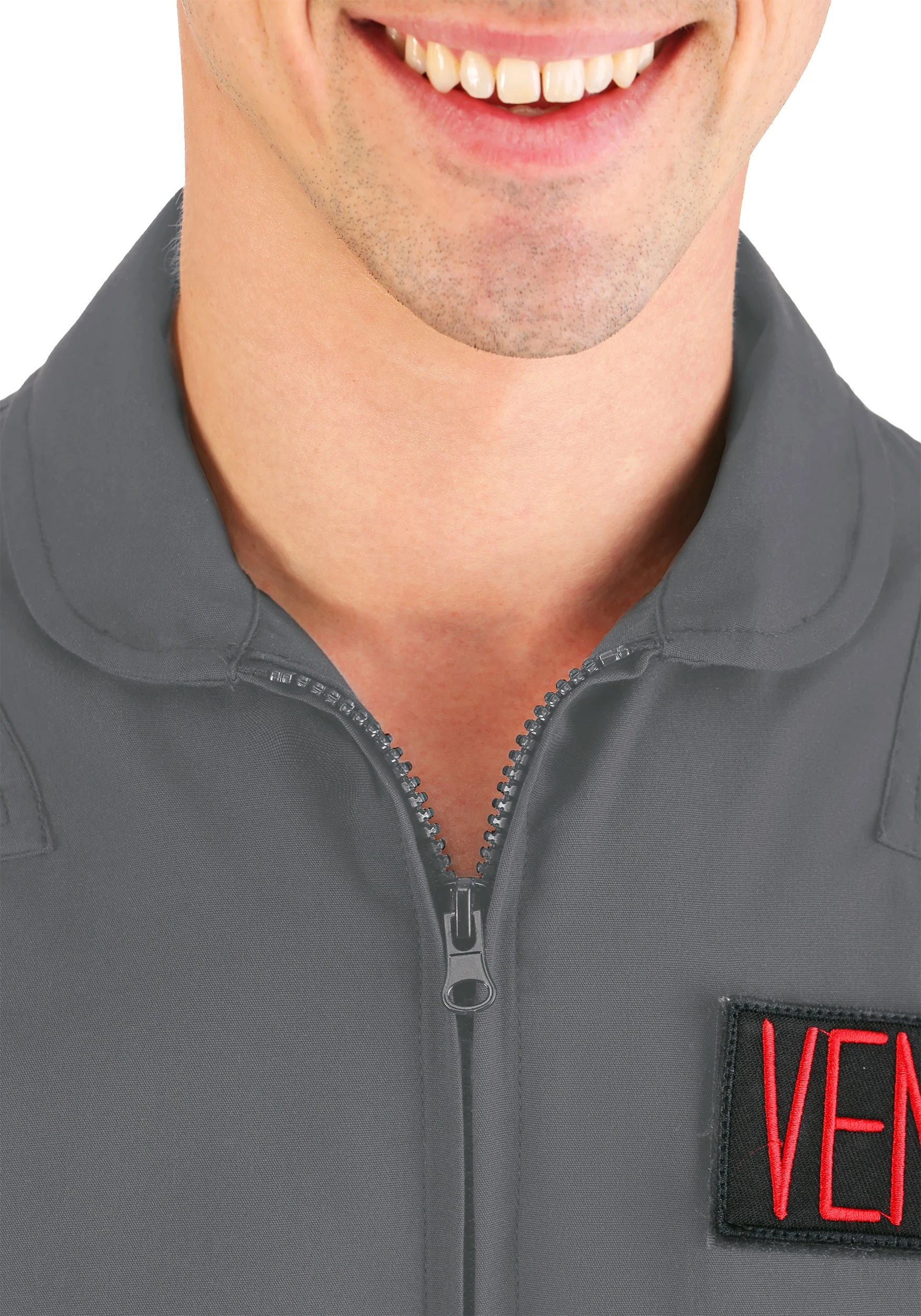 - Embroidered Ghostbusters patch sewn on right arm of jumpsuit