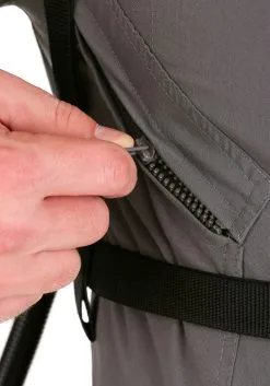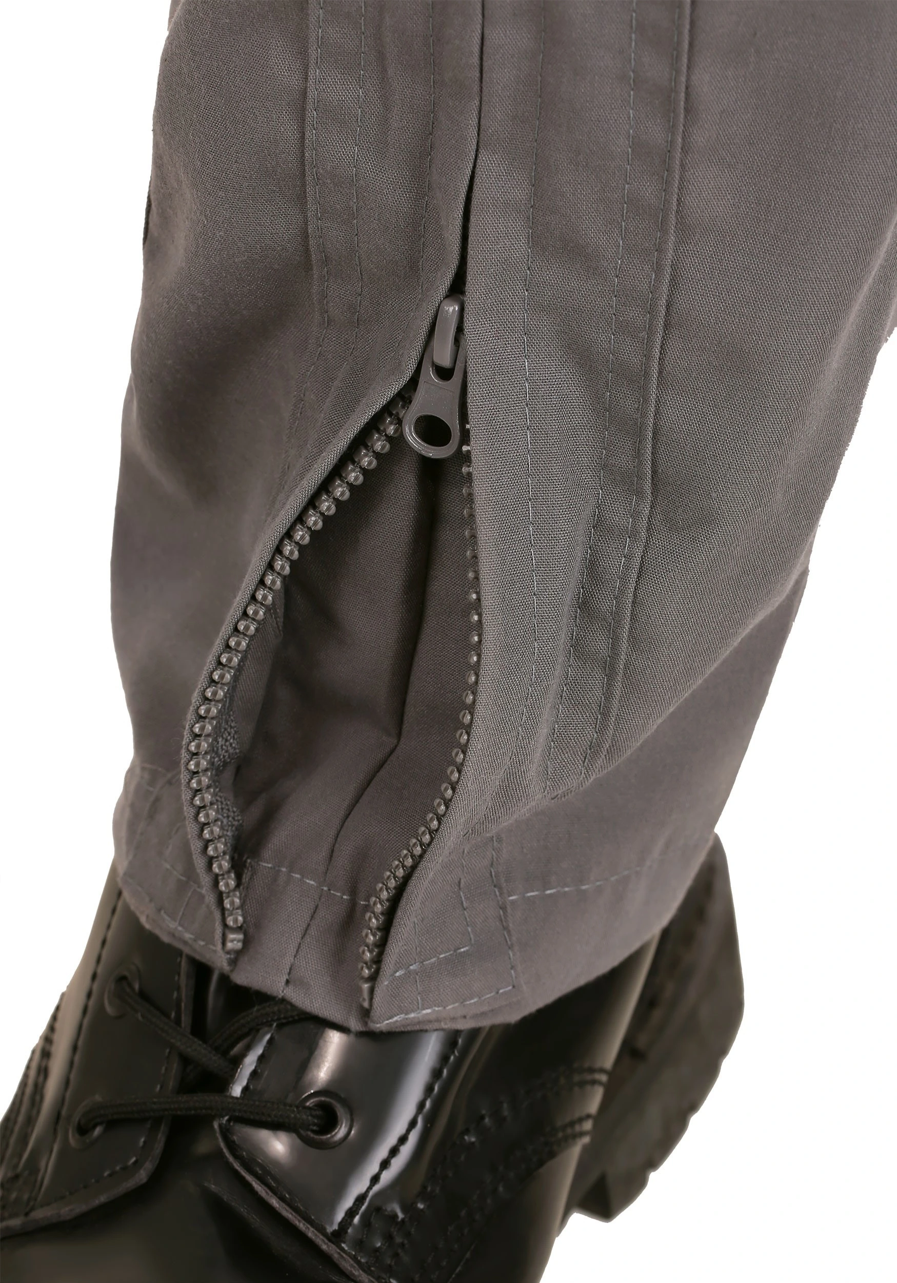 - Jumpsuit has front zipper closure and zippered pockets on front