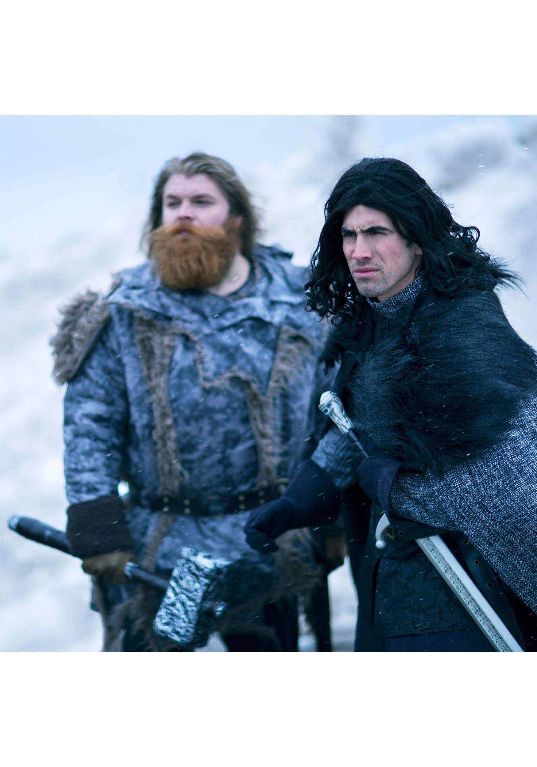 Have a giant wall you need to scale? Need to take on a fancy-schmancy empire? This Wild Warrior costume is Made By Us, giving it a unique take compared to all the other fighter costumes out there. The featured coat has a leather look and is trimmed with faux fur along the seems. A scarf sits on the shoulders for an intense look. The long tunic type jacket has a ragged hemline. It has a belt at the waist with ancient looking metal details. Make this look yours with the weaponry accessories of your choice that you might find in the Viking costume catalog.