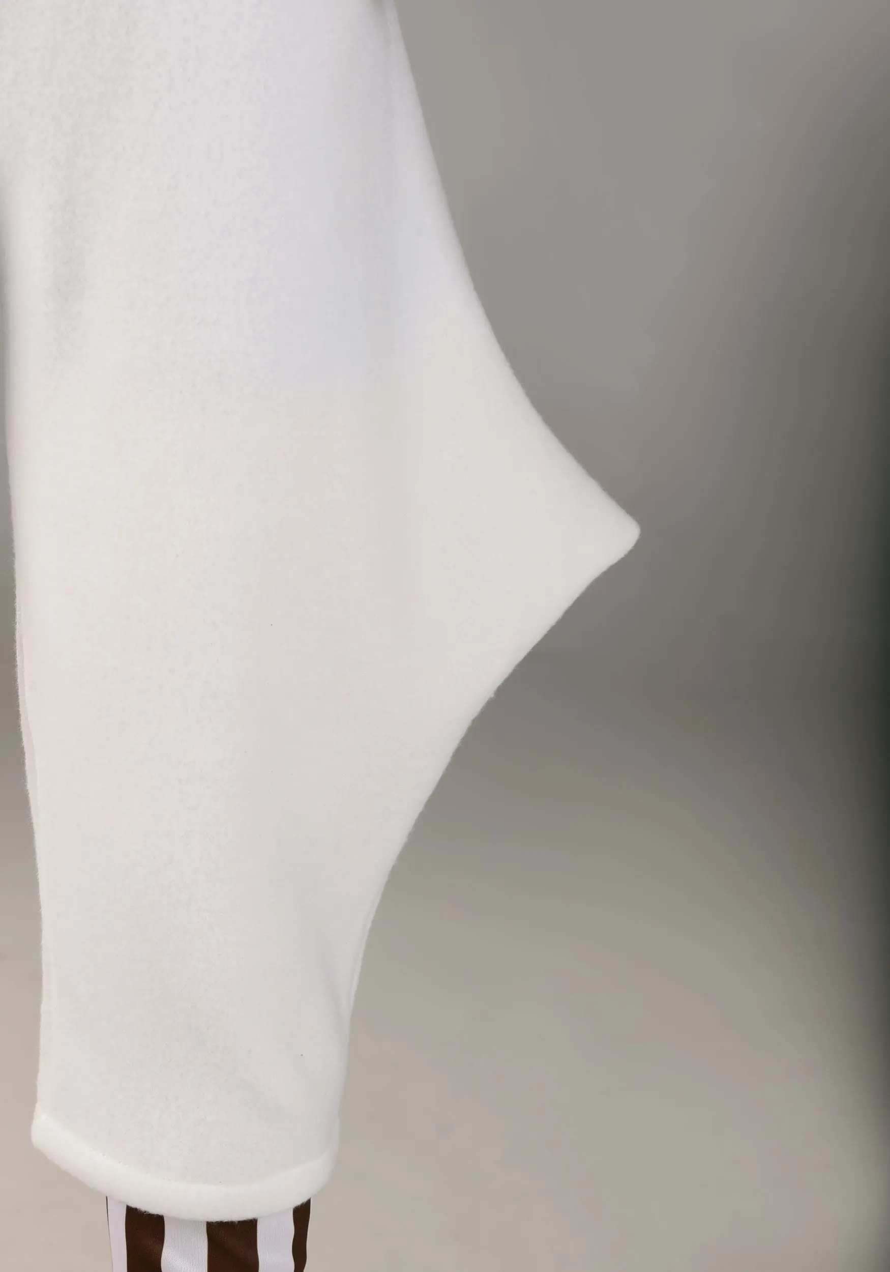 - White fleece bottom w/ sewn in brown top, jersey knit sleeve cuffs and collar